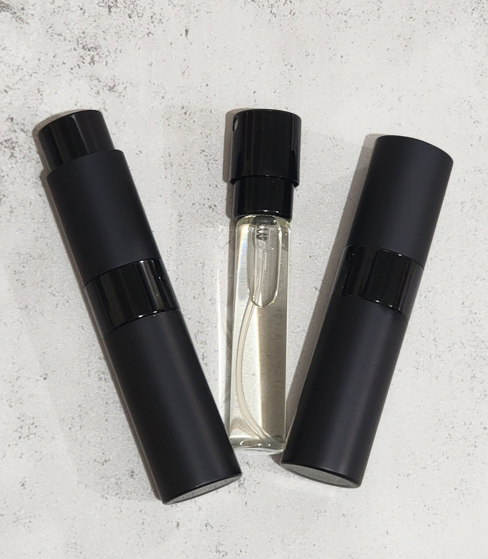 Atomizers are made with perfumers alcohol, dipropylene glycol (biodegradable), and fragrance oil. Twist to access the sprayer, and remove the tube to refill.